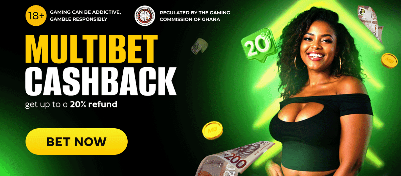 Bet 60 GHS multibets, add 3+ events, lose, and claim 20% cashback!