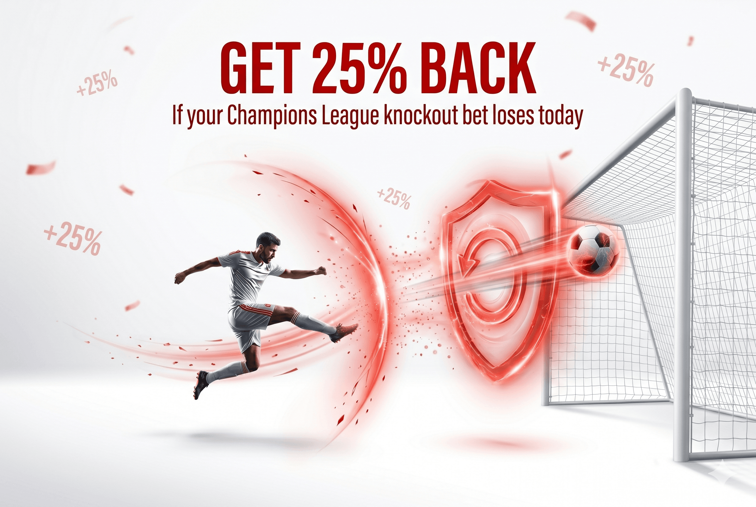 Recover twenty-five percent of your stake if your Champions League knockout bet loses today.