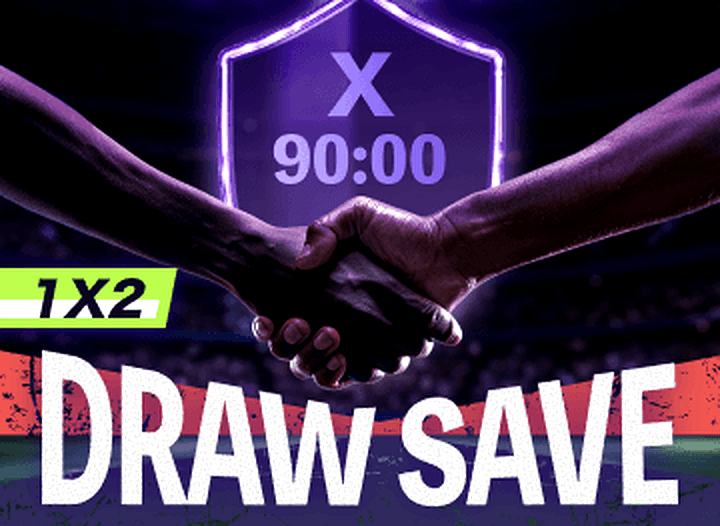 DrawSave is an early-settlement feature for football 1X2 – Draw bets. When DrawSave is selected, a qualifying draw bet is settled as a win if the match is level at the end of the 90th minute, or if the match later finishes as a draw.