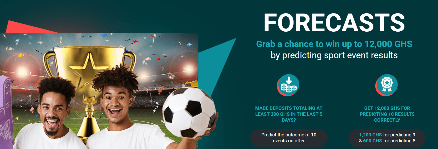Join 22BET Forecast –deposit GHS 300+, predict 10 matches daily, and win exciting rewards!