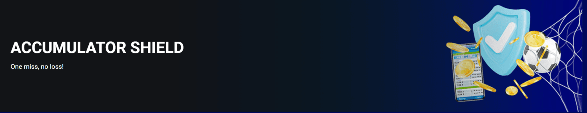 One miss, no loss! The Accumulator Shield protects your Express bets, if one selection loses but all others win, you’ll get your stake back as a freebet.