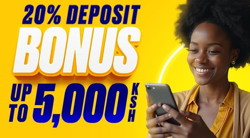 Players can receive a 20% Free Bet bonus capped at 5,000 KES after making a qualifying deposit.