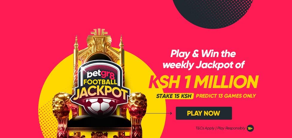 The Betgr8 Jackpot requires players to predict the results of 13 pre-selected football matches. Each entry costs 15 KES.