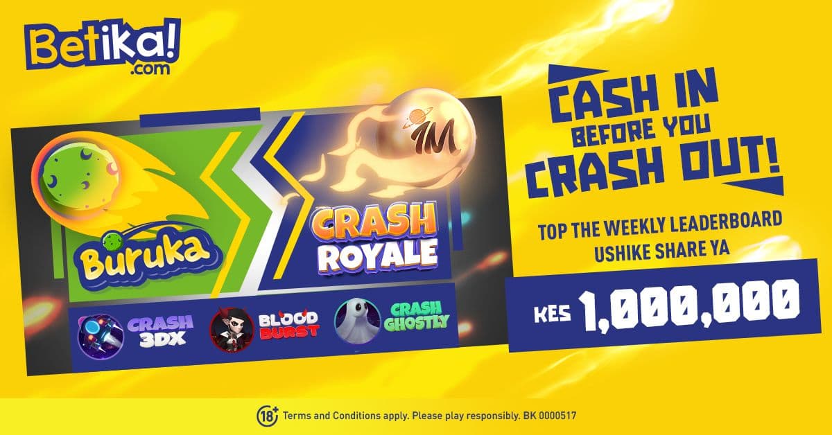 - Open to Betika customers placing cash bets on the following games: Buruka, Crash Royale, Crash 3DX, Crash Ghostly, and Blood Burst.
