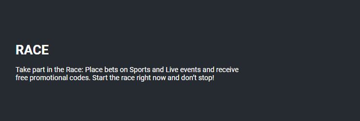 Join the exciting Race Promotion of placing bets on Sports and Live events. Receive fantastic promotional codes for free! Get ready to kick off the action right away and keep the momentum going!