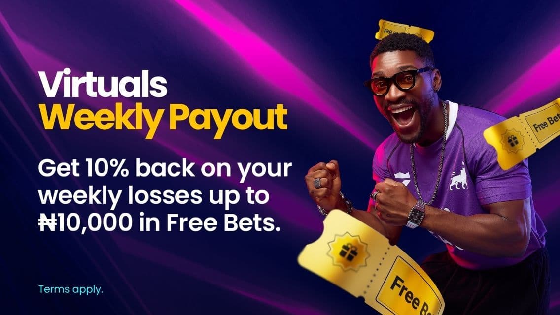 BetKing offers up to ₦10,000 in Free Bets weekly on Virtuals, even when you lose.